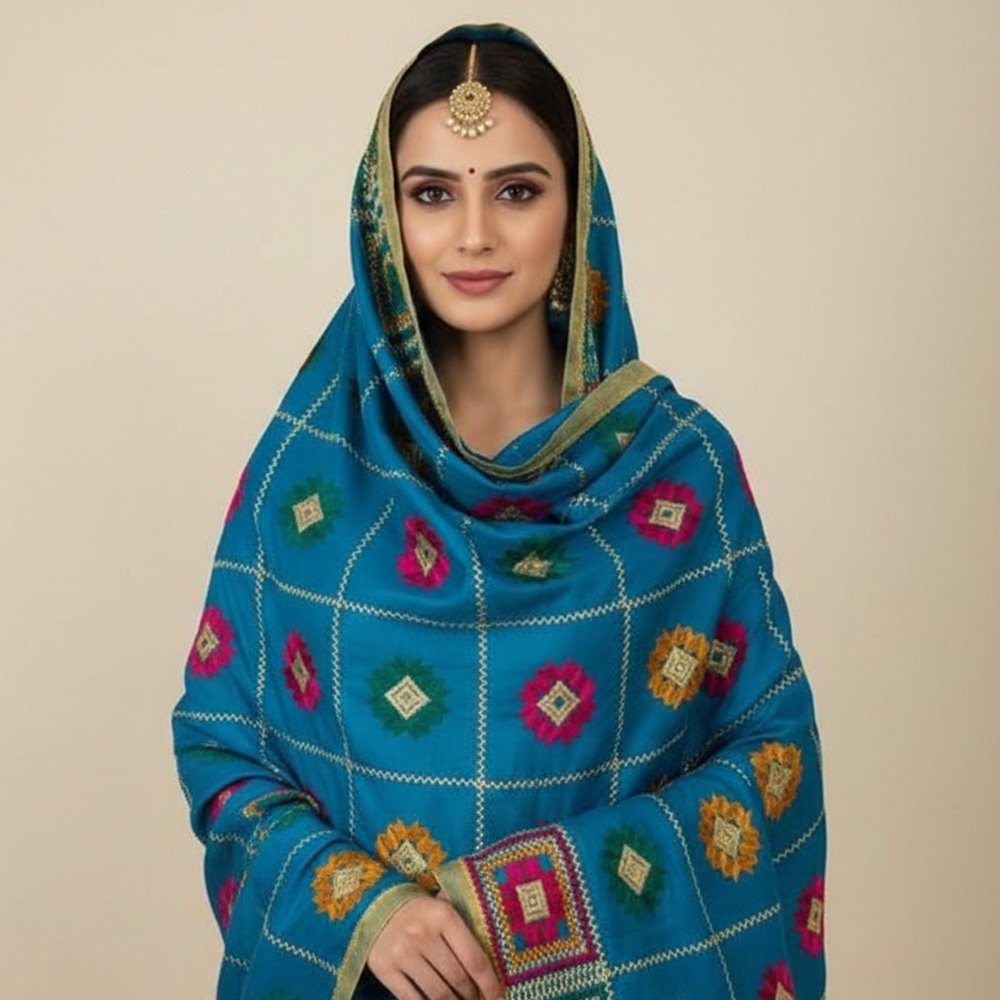 Chiffon duppata with multicolour reshami thread Phulkari