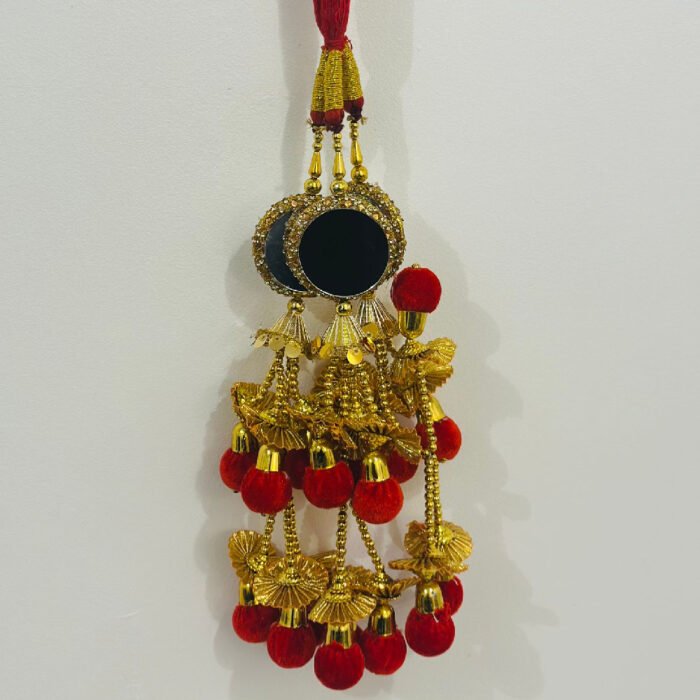 Be the first to review “Design 15 Gold Colour Punjabi Paranda Hair Accessory With Mirror Parandi Red and Braid Tassels Hair Extensions For Womens” Cancel reply