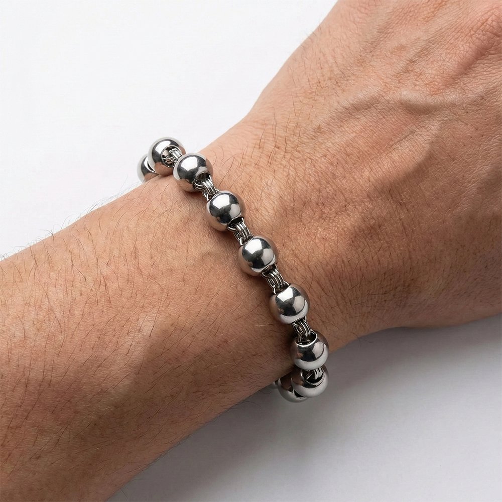 Stainless steel solid beads shiny meditation praying simarna its in to medium weight.
