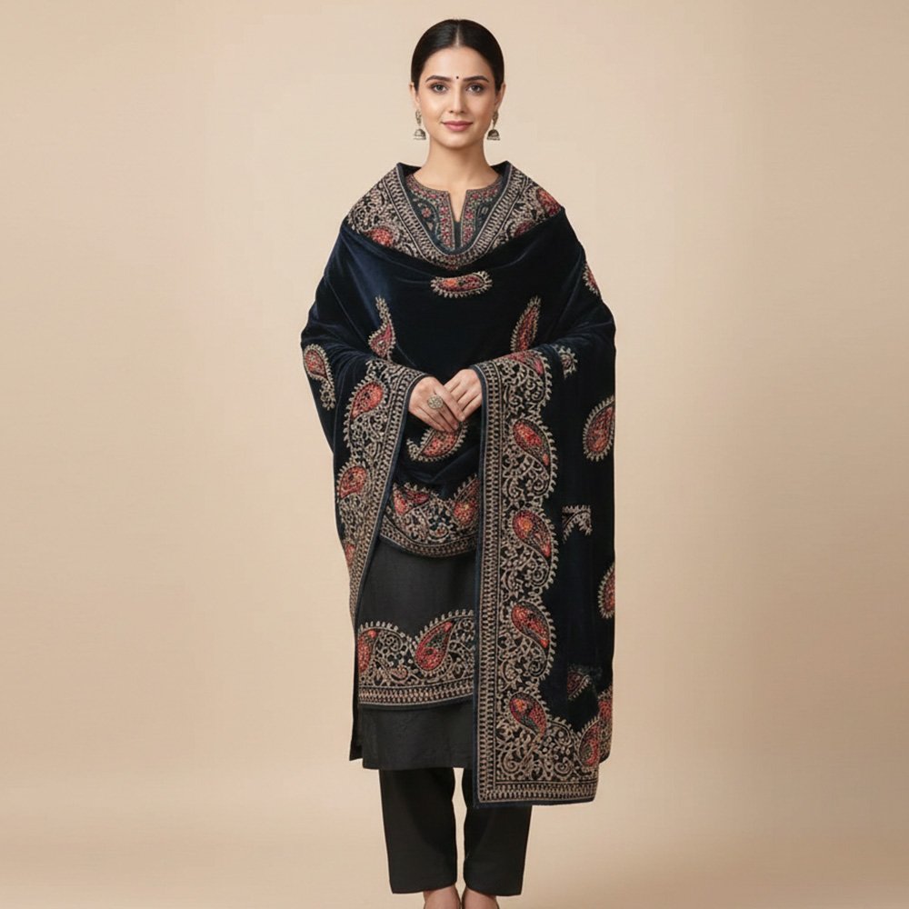 Home Women Shawl Velvet Shawls Design no 3 Embroidered Velvet Shawl