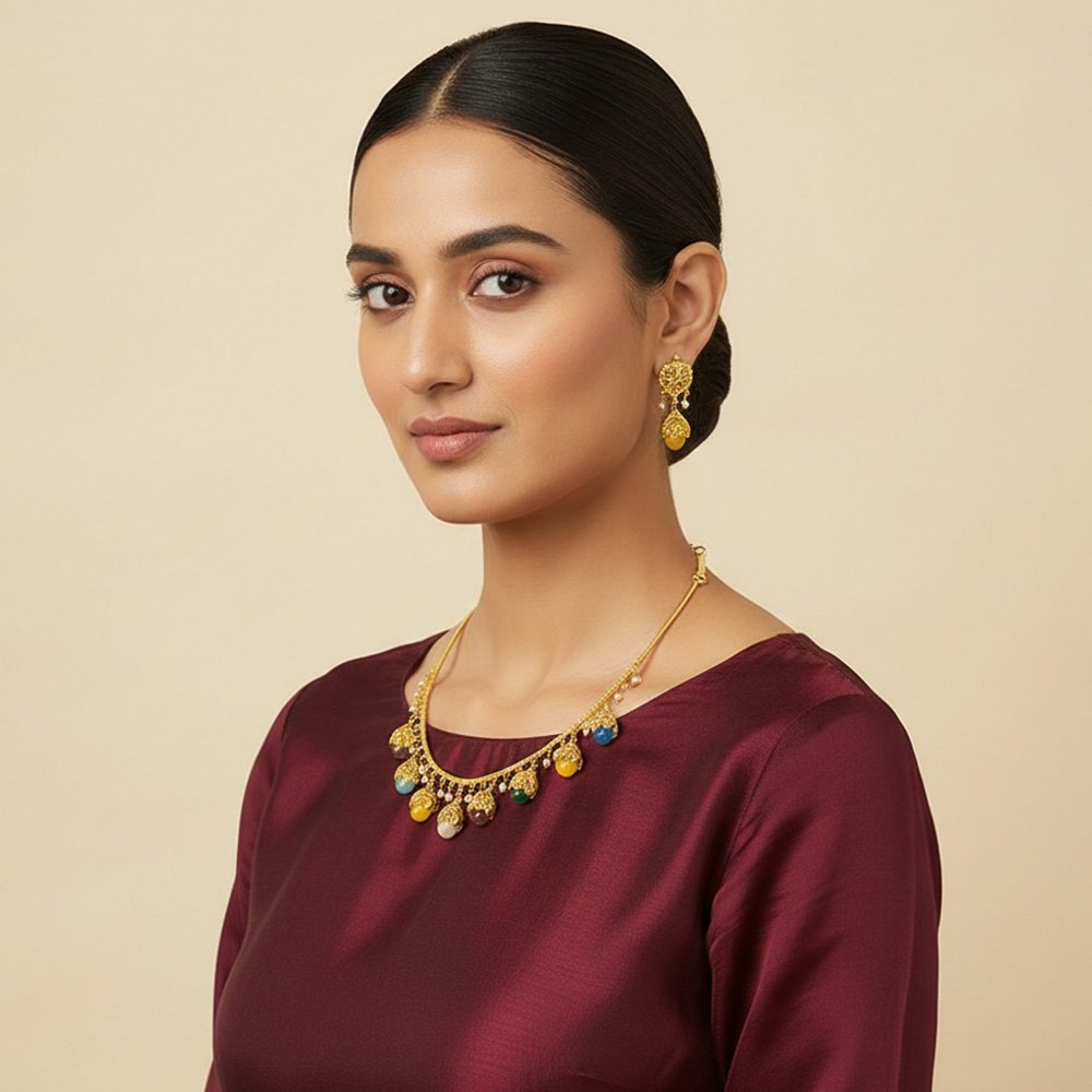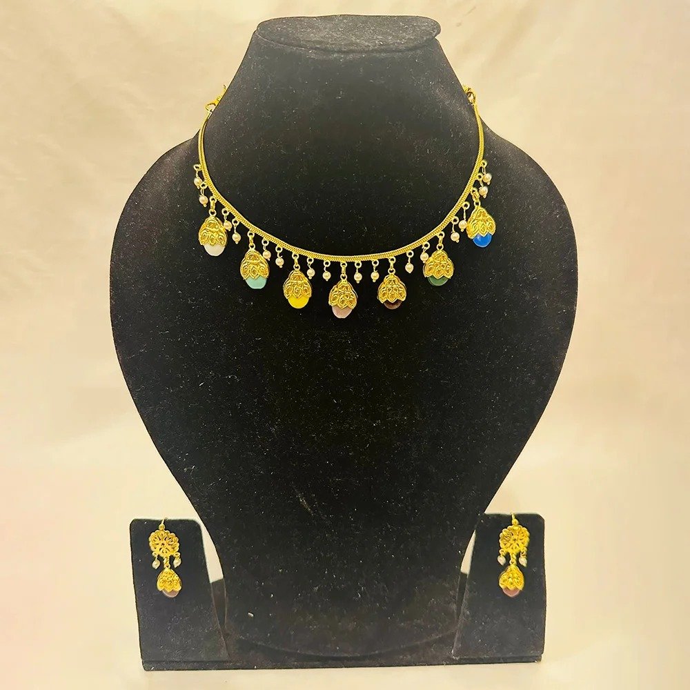 Gold look multi colour jugni set with ear rings