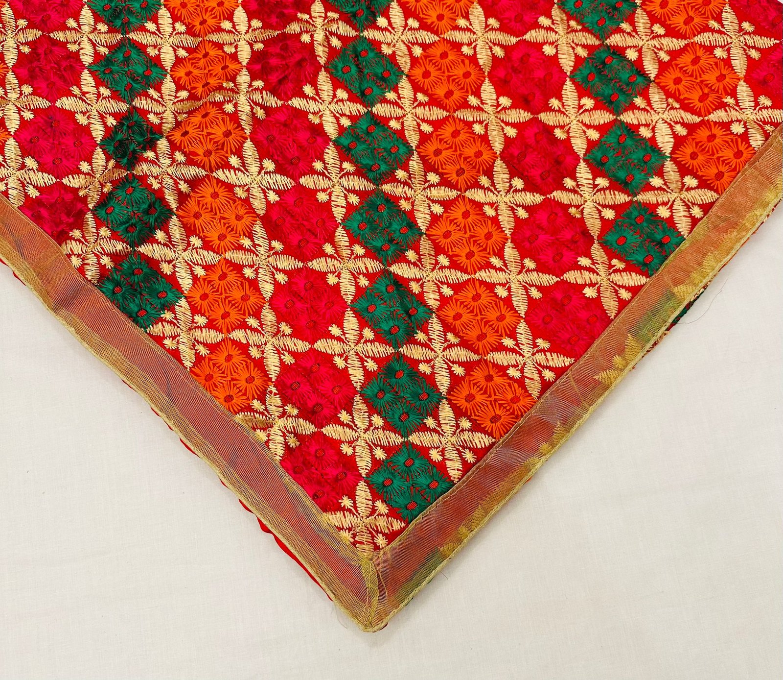Chiffon jeorgtte duppata with reshami thread work Red Phulkari