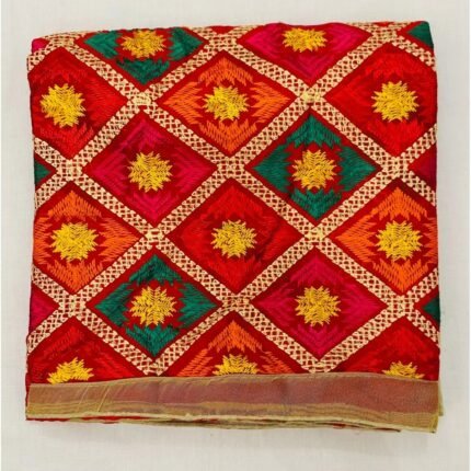 Chiffon jeorgtte duppata with reshami thread work Red Phulkari
