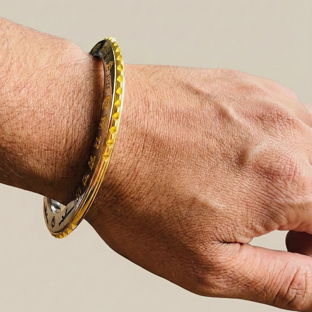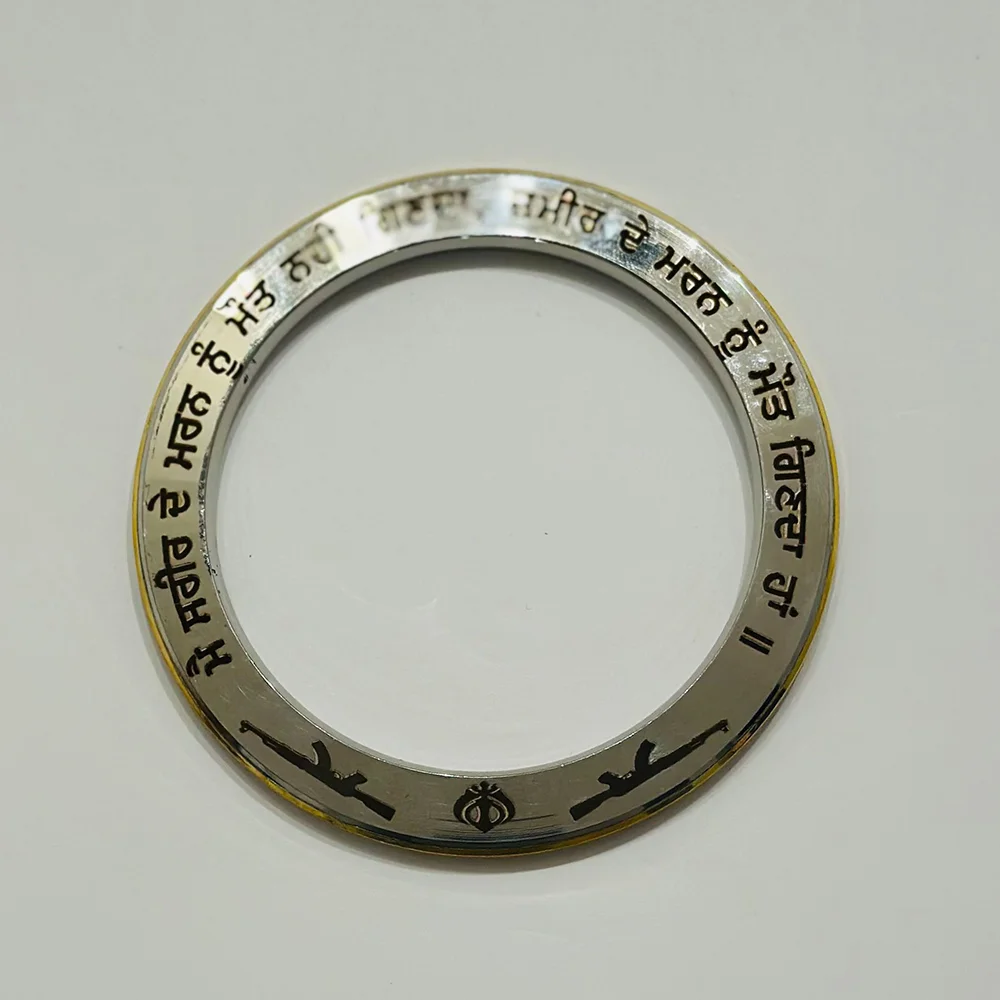 Sikh Kara solid steal Gurmukhi Alphabet on and Sant Jarnail singh bhindranwale ji words on other side kara nice thread on all over the edge