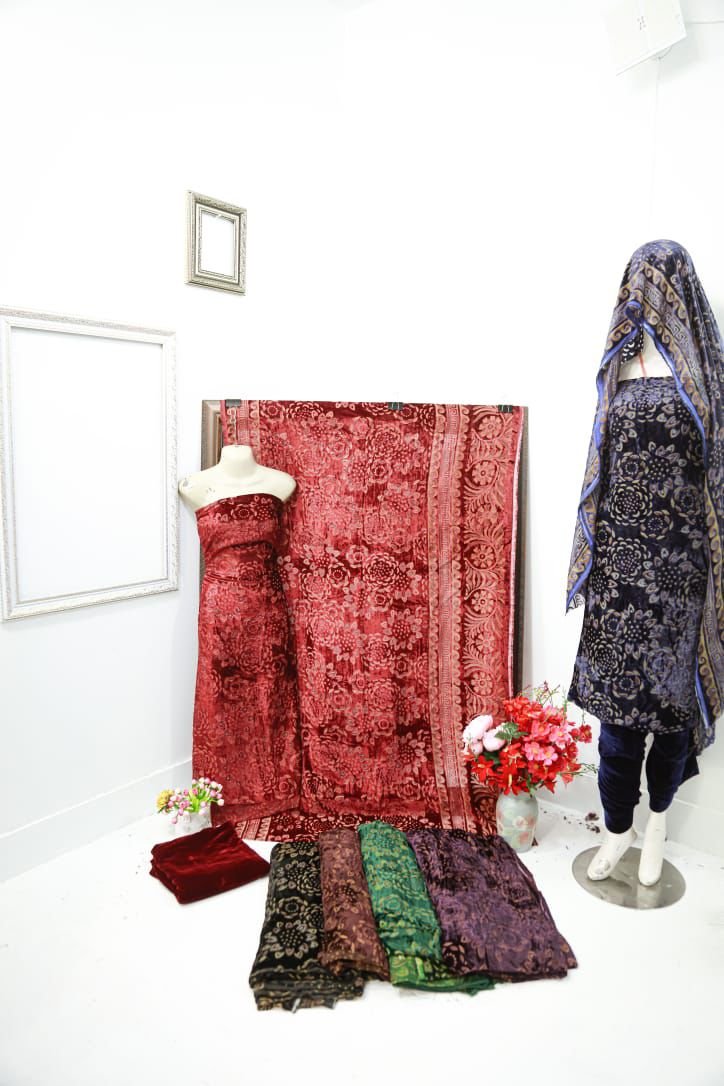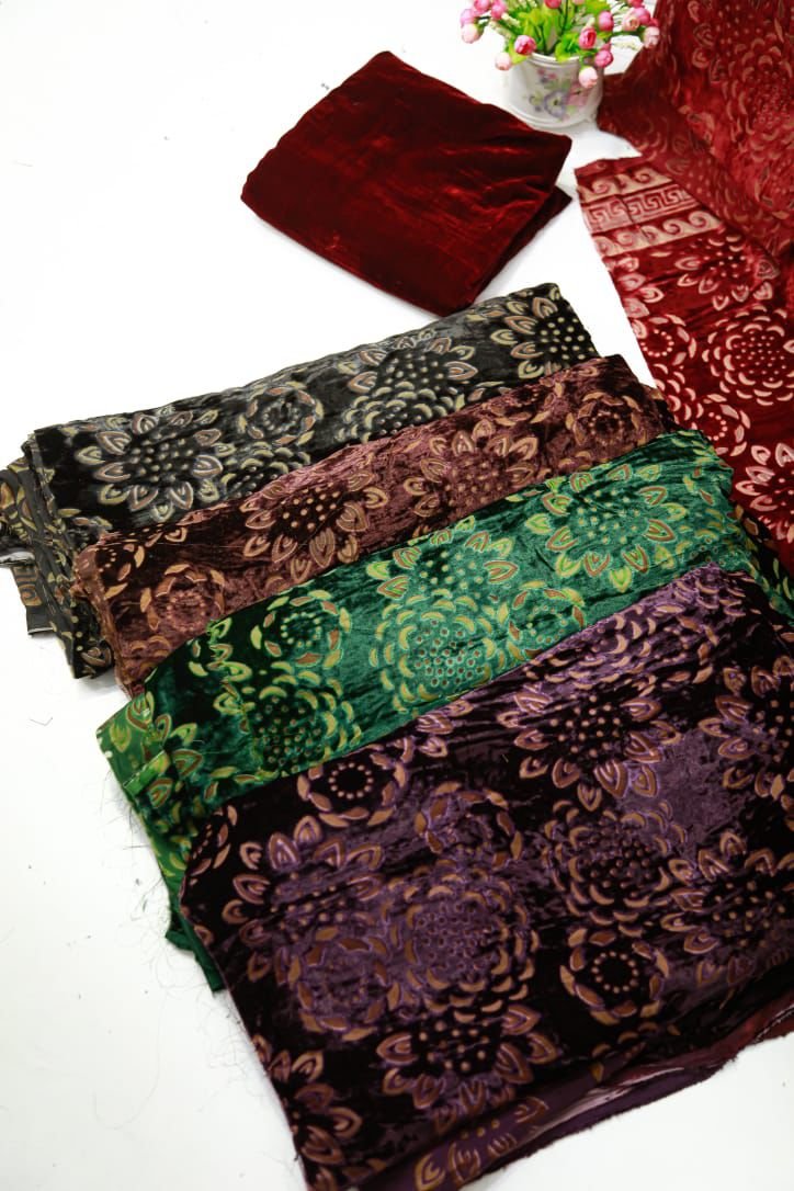 Velvet(Plachi) Print Suits With Gorgeous Duppata